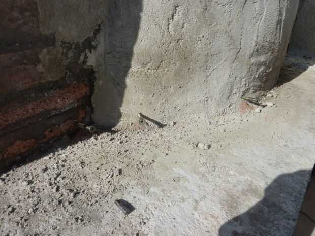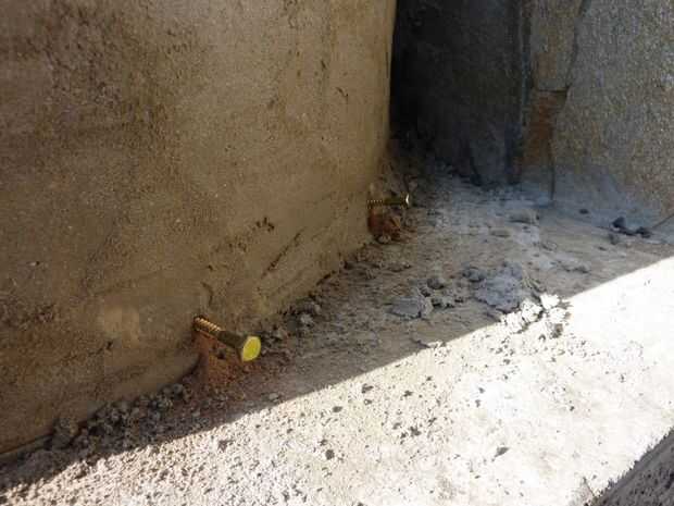 Una vez que ha secado el mortero, en su base hace agujeros con un taladro