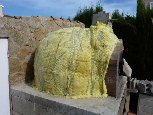 Una vez que se coloca lana de vidrio, puse una malla de metal, que es el agarre que servirá el mortero de la capa reflexiva se dan posteriormente., todo asegurado con alambre