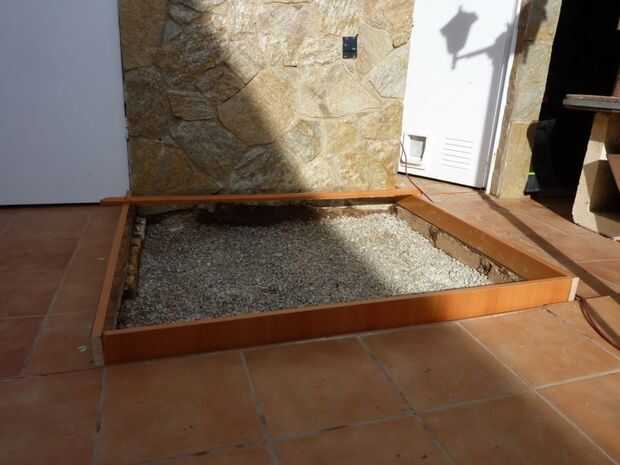 Entonces tengo que agradecer vecino incivilizado, que dejó con los contenedores, que serían el corte de un armario y recogieron, (tienen que usarlo todo), hice el encofrado, cerca de 25 cm de alto