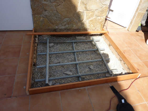 Aprovechando los tubos de acero galvanizado, que no tenía uso, hice la rejilla entonces verter el hormigón.