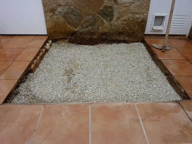 tierra dura. El agujero mide 140 x 120 cm y luego llené con 8 sacos de grava # 2