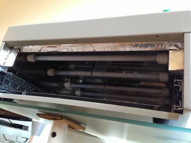 Apertura de la campana era muy simple, sólo jale el cajón hacia fuera y quitar unos tornillos. Luego la parte superior está abierta.