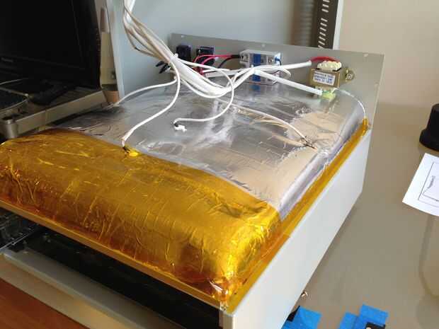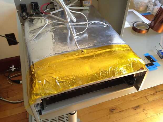 Entonces era la fuente del problema - cinta de enmascarar. Se utiliza cinta adhesiva para evitar cortocircuitos eléctricos entre el papel de aluminio para cubrir el material de aislamiento y el PCB. A pesar de que hay material de aislamiento térmico por debajo de ella, la cinta es lo suficientemente caliente como para producir ese olor desagradable. Así retirar toda la cinta adhesiva y lo reemplazó con cinta Kapton, que es resistente al calor.