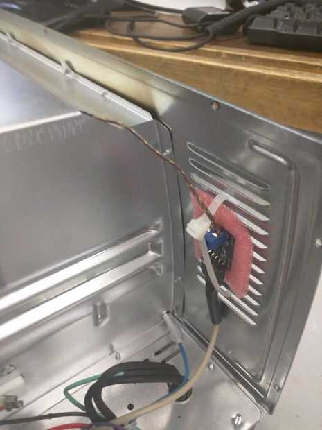 Te adjunto el PmodTC1 con un ziptie a la posterior ventilación del recinto. También recorrió el alambre del termopar de la grieta en la cámara de calentamiento y la cabecera de 6 pines pmod recorren la ventilación inferior para conectar al microcontrolador.