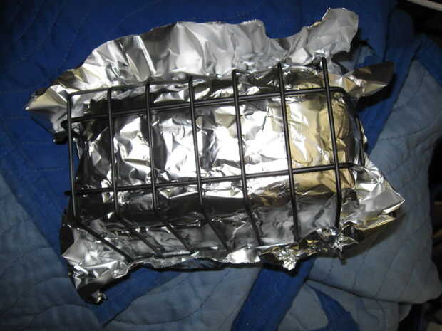 Esto se hace haciendo un reflector nuestro papel de aluminio. El papel de aluminio o rasgado del rollo en la marca de 9 pulgadas. Luego dobla el lado brillante hacia la luz interior de la jaula de seguridad. Sólo en forma suavemente y trate de no copiarlo.