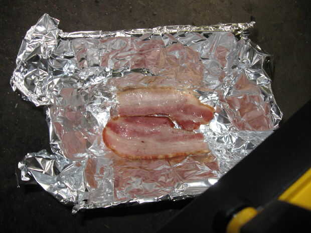 Después de un par de minutos verá humo, oye chisporrotear y oler el olor glorioso de cocinar bacon. Después de 4 minutos tienes tocino cocinado a la perfección, crujiente y listo para disfrutar...