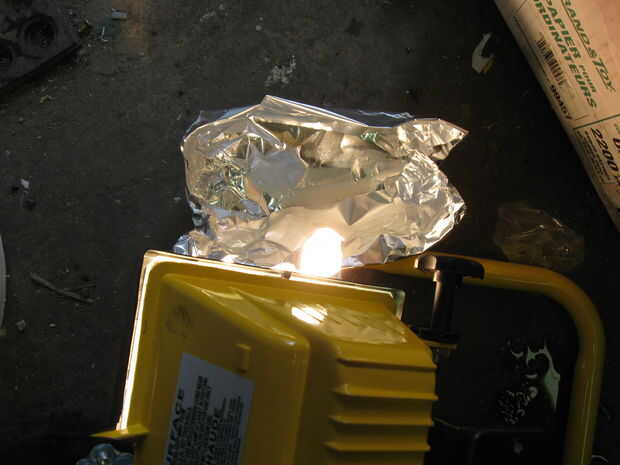 Coloque el tocino sobre la parte más lejos del reflector de la luz. Coloque el reflector en su sitio frente a la lámpara y encender la lámpara.