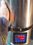 Después de la terminación de la fusión, debe presionar la palanca del ascensor y, a continuación, puede coger la ebullición por medio del gancho agarrador. En la foto,