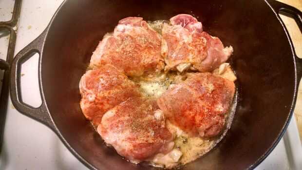 Horno holandés de muslos de pollo y arroz (1 / 3 paso)