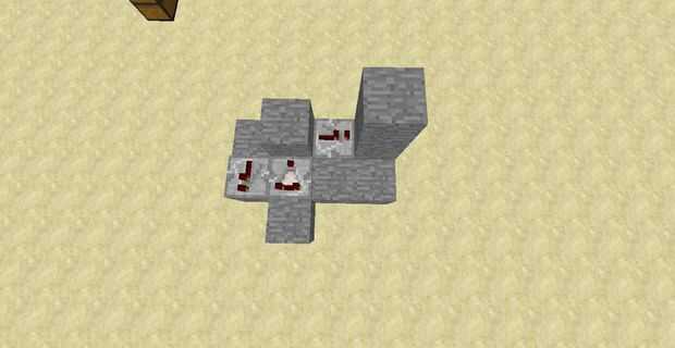 los puntos de repetidor en un bloque con una antorcha de redstone en el lado, un bloque en la parte superior de la antorcha y finalmente una antorcha en el lado opuesto del bloque derecho superior (este debe ser apagado y está al lado del tapa gotero, esta antorcha se utilizará para activar el cuentagotas más tarde) el elemento elevador se hace por ahora.