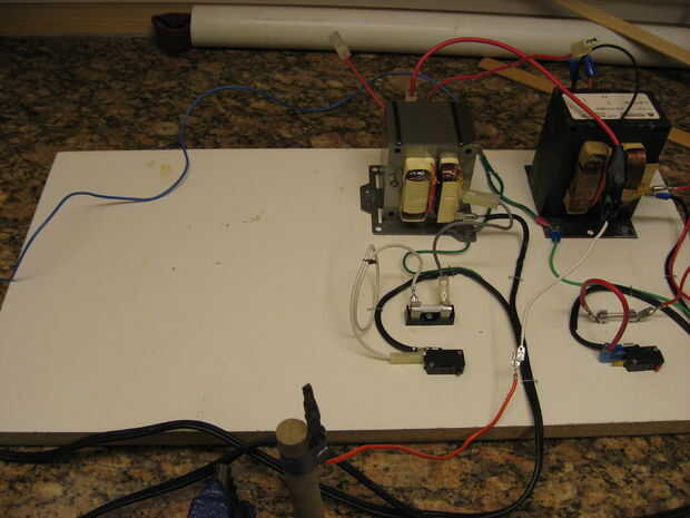 he decidido que he podido encontrar una base mejor y más presentable para mi proyecto de desecho 2 x 4, así que reorganizó todo en un pedazo de Formica que darme espacio para por lo menos dos transformadores más. Además, es más fácil poder solucionar y modular
