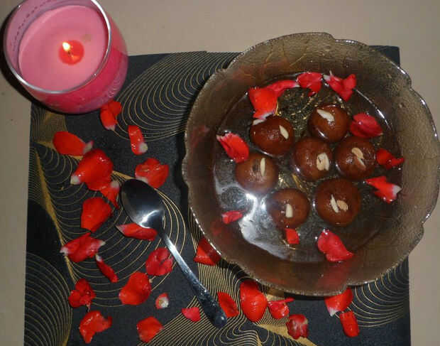 Gulab Jamun es un plato de postre muy popular en la India y países vecinos. Generalmente se hace con khawa y panner (queso), basada en elementos de la leche. Pero intentó hacer con pan para facilitar el proceso y el resultado fue genial. Y la present