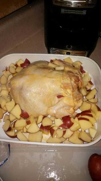 Ahora hornea el pollo durante 1 hora o hasta que la temperatura interna alcanza los 165 o más.