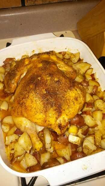 Horno pollo entero al horno con patatas de rojo (4 / 5 paso)