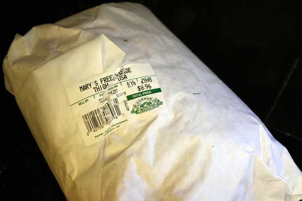 8-12 muslos de pollo, hueso y piel intacta (más barata y sabrosa de pechugas de pollo sin piel)