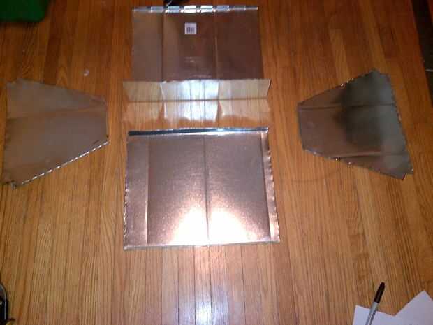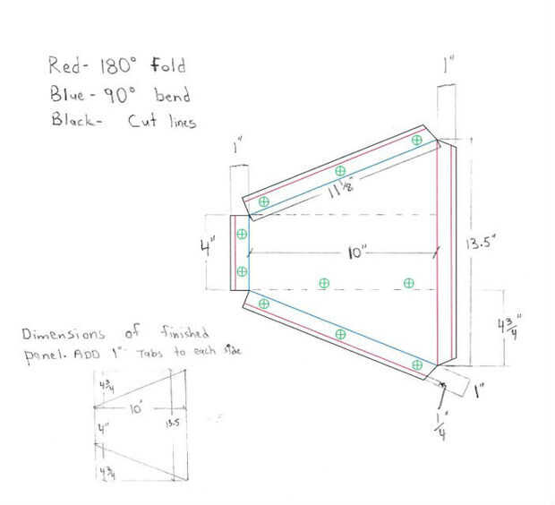 Composición de los lados, marca en 1" del borde de la lata y el diseño forma centro primero usando el diagrama. Una vez que el centro es apoyado por las pestañas de la marca que salen 1" de cada uno de los bordes, éstos se utilizarán para sujetar el horno juntos.