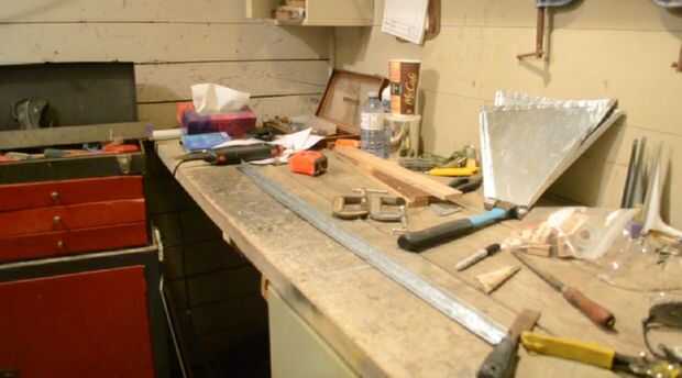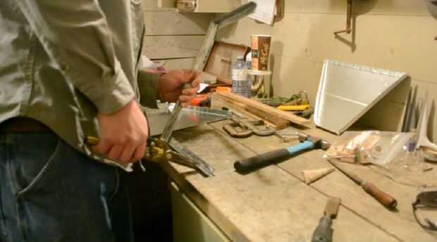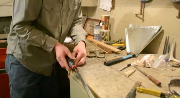 1) comenzar por ranurar 1/4" a lo largo del borde largo de la ayuda de estante, este doble sobre y martillo plano. Repetir este proceso con el borde opuesto pero inclinarse a la cara opuesta.