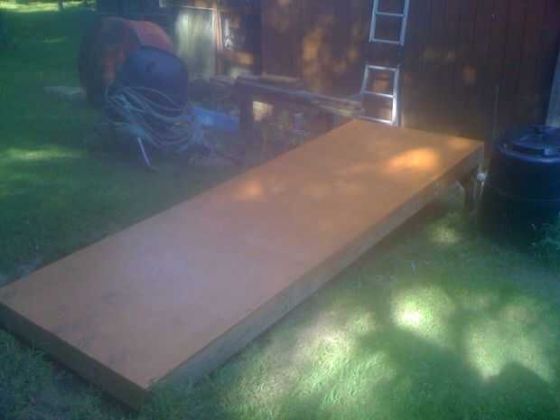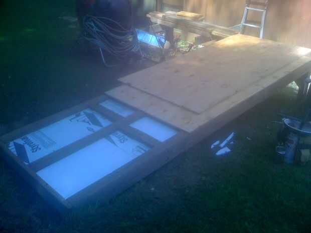 A continuación instalé madera contrachapada de grado exterior de 3/4 de pulgada en el armazón del piso. Esto es ver si se construyó la Plaza de marco (es decir, todas las esquinas de 90 grados) y resultó bastante bien; solamente cerca de un 1/8 pulgadas fuera de escuadra. Me han dicho que carpinteros todos cometen errores pero un buen carpintero sabe ocultarlas.