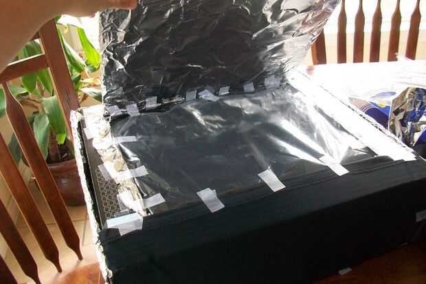 Cocina solar - utilizando una construcción de caja de cartón forrada con papel de aluminio para aprovechar la energía del sol para cocinar sus comidas, deshidratación de alimentos y purificar incluso el agua!Recetas pueden encontrarse en: http://sola
