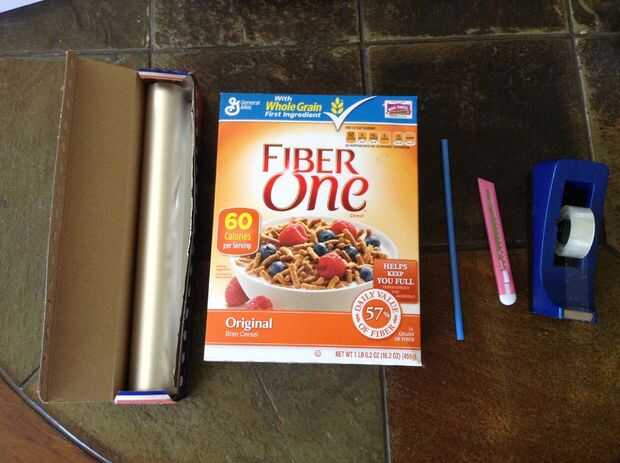 hice este horno solar de la nada, pero:una caja de zapatos (con la tapa puesta, no removavel),una camisa de invierno vieja,una bolsa de plástico,papel negro,dos lápices,y papel de aluminio.Paso 1: la tapa Corte la tapa como la imagen.Paso 2: el "cris