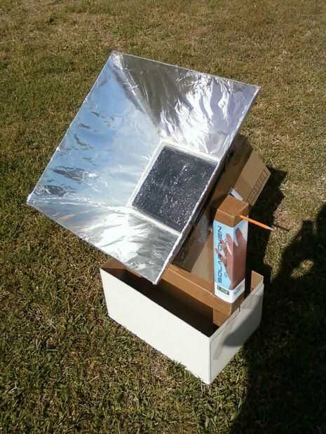 Ahora que el horno está listo, aquí están algunas reflexiones finales. Recipientes de cocina también deben ser negro así que considere encontrar una lata y pintura negra así. Porque la pintura puede necesitar algún tiempo para curar y puede liberar solventes extras (leer: mal olor), es probablemente sabio ejecutar el horno una temperatura completa un par de veces sin el alimento en ella para eliminar cualquier olor. Encontrar un lugar con una vista clara y sin obstrucciones del cielo. La hora del día no importa tanto como uno esperaría. Tenemos fácil más allá de 115° C (240° F) en minutos, a las 18:00. Se alinean con el sol apuntando en la dirección general y giro inclinación hasta que ninguna sombra de las paredes laterales se veían en la cámara de cocimiento. Recuerde que usted necesita ajustar esto cada cierto tiempo para un rendimiento óptimo. Use un termómetro para carne o sonda de temperatura para la posición es perfecta y se están alcanzando las temperaturas más calientes. Por último, si la comida debe mantenerse plana y la inclinación puede causar un derrame, puede insertar un pasador de madera, pieza de metal, barra de colgador de ropa, cualquier cosa a través del centro de la cámara para poder colgar una góndola para el alimento. Esto le permitirá a hervir el agua incluso cuando significativamente inclinada.