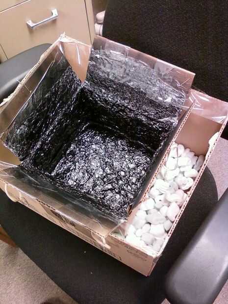 La última foto muestra uno de los dos soportes opcionales que usted puede construir.  Si encuentras una caja un poco grande que la caja de aislamiento, puede construir una base muy sencilla pero algo endeble.  Continuar para obtener instrucciones detalladas en la base.