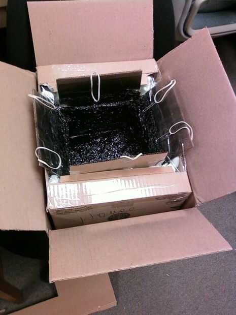 Encontrar una caja de unos 2-3 pulgadas (5-8cm) más grandes en todos los lados que la cámara de cocimiento.  Llene el fondo con una capa de espuma embalaje cacahuetes (o papel triturado) cerca de 3 pulgadas (8cm) de espesor.  Coloque la cámara sobre los cacahuetes y centro en el cuadro.  Proceder a llenar la caja con embalaje cinta segura y cacahuetes.