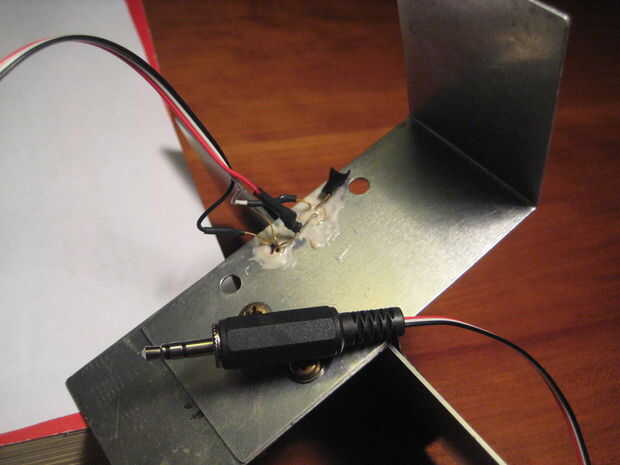 8. soldar los otros extremos del cable a la clavija 3 conductores como se muestra.