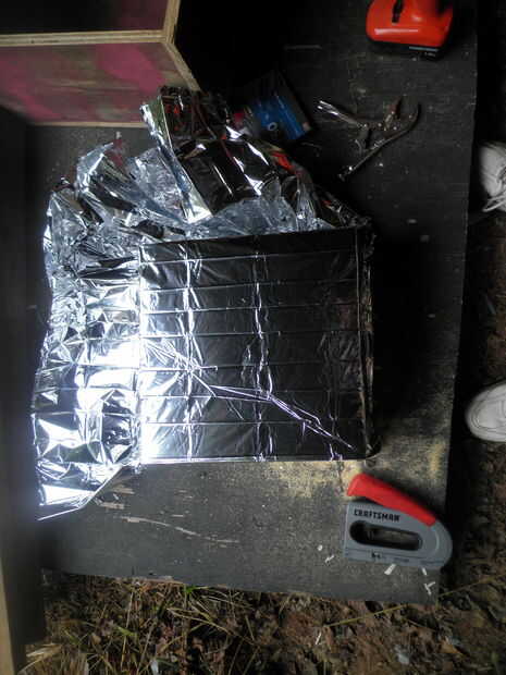 aprendí en mi investigación que parte del calor perdido en un horno solar es a través del vidrio. En retrospectiva podría haber sido capaz de hacer el horno sin la caja externa. No realizo ningún experimentos con sólo la caja interna. Eso sería un proyecto para otro momento. Para el aislamiento que decidí usar una manta de la emergencia. Es decir que refleja el 90% del calor corporal. Pensé que podría funcionar bien para lo que necesitaba. No utilice espuma de poliestireno. Se derriten y liberan sustancias químicas en los alimentos.