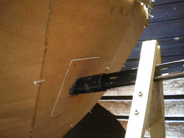 Taladre un orificio en dos pétalos opuestos. Usé una sierra para madera eléctrica para cortar una elipse (la intersección de una parábola y un cilindro se puede aproximar por una elipse). El cilindro que utiliza tiene un diámetro de 4cm así que corte una elipse de los 4x6cm.