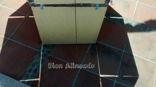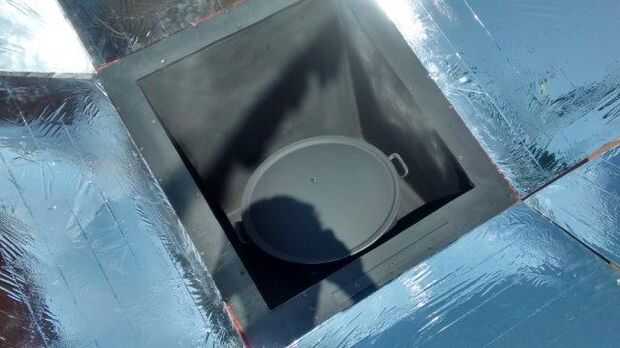 El horno debe ser alineado de tal forma se generen líneas de sol paralelas a la caja en la sombra posterior del horno como se muestra en la fotografía.