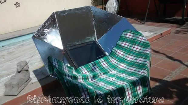 Para bajar la temperatura se puede colocar una sabana o una cobija que la cinta los paneles del colector solar, lo hará la captación disminuya y el calor también.