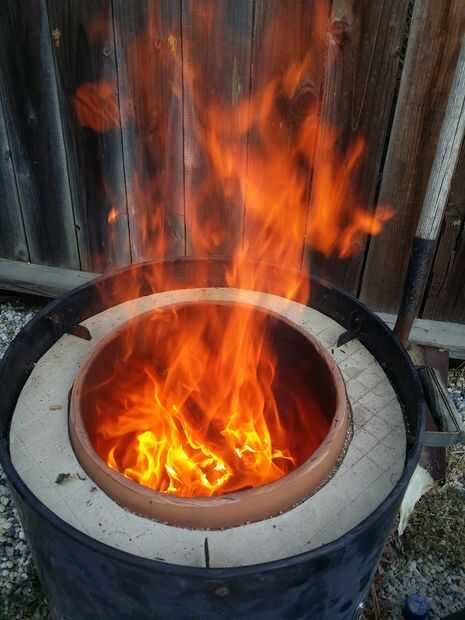 Tengo mina establecido sobre la base de mi nuevo ahumador, y funciona muy bien. De hecho, es casi como un cohete gracias a la ventilación de la estufa. Pero se puede establecer sobre suelo desnudo también. En cualquier caso, consigue la temperatura adecuada para salsas de yogur o pan naan.