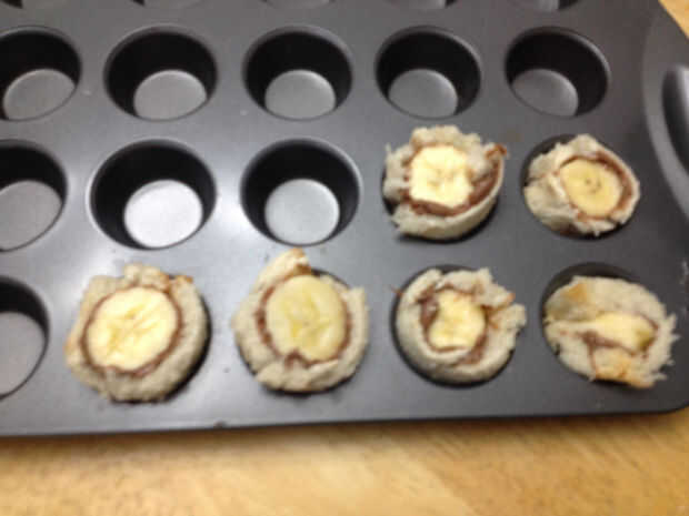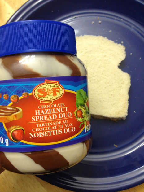 Avellana de la spread extendido entonces poner un plátano en pan y rodillo