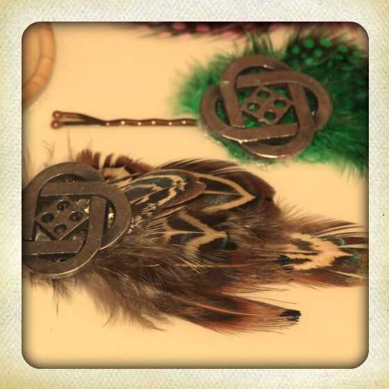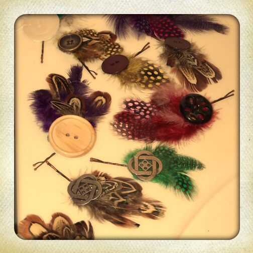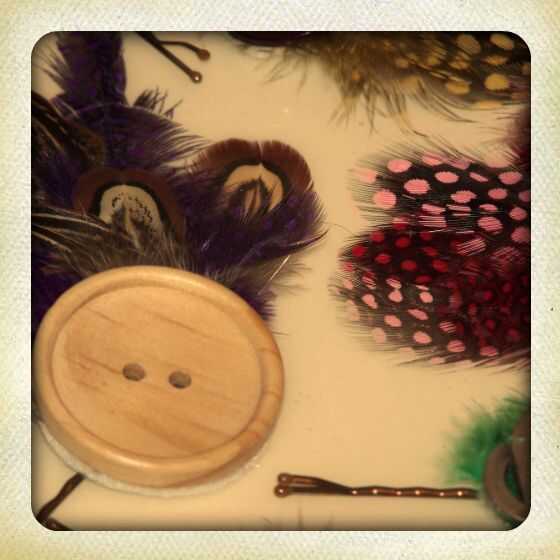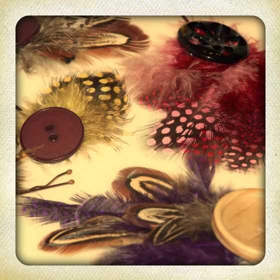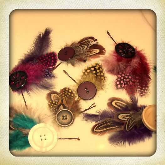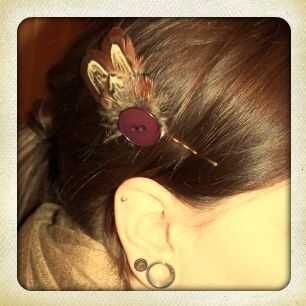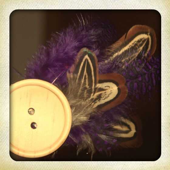 Luego pegue el botón (con plumas adjuntadas) a la horquilla de fieltro.