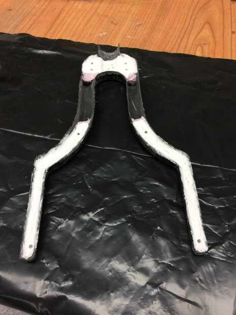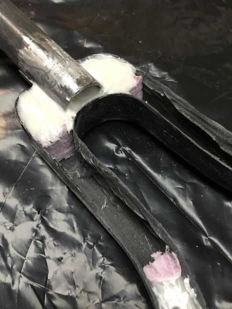 • Quería asegurarse de que esta parte era muy fuerte así que llena la mayor parte de la horquilla de epoxi espesado.