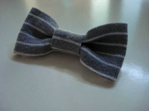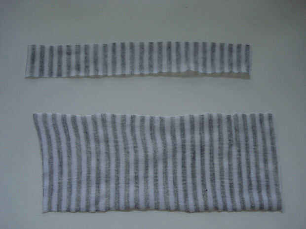Nota: Puesto que estoy usando a tela de camiseta para este arco particular, no tengo que preocuparse por los bordes de acabado ya no fray. Si usas algodón u otro tipo de tela que necesita terminar, tener en cuenta al cortar a la tela a la medida. La longitud será todavía un tercio del arco final, pero la altura será una media, por ejemplo.