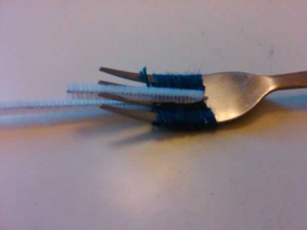Estos mini pompones toman literalmente dos minutos a hacer y se puede utilizar para las toneladas de fresco DIYs de cojines hechos a mano a coloridos posavasos!Paso 1: Lo que usted necesitaun par de tijerasun tenedoralgunas lanasPaso 2: Tomar la lana