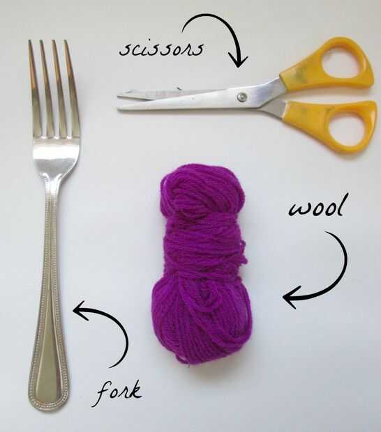 hacer tus propio mini pompones en 30 segundos. Todo lo que necesita es la cuerda, tijeras y un tenedor.Paso 1: Recogemos materiales Te necesita cuerda o guita, un tenedor y tijeras.Paso 2: Preparación para guita Corte un pedazo corto de guita. 1-2 pu