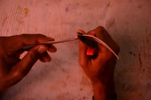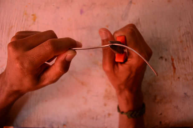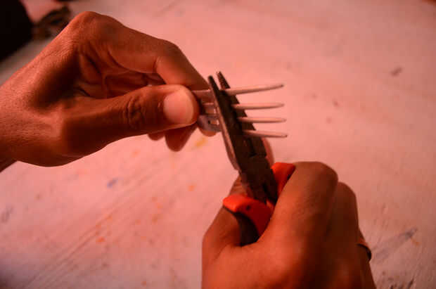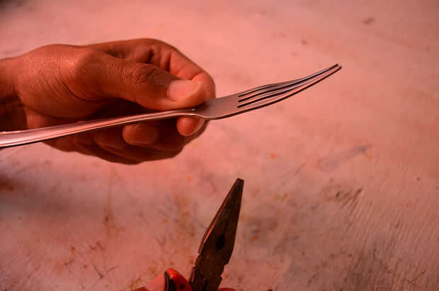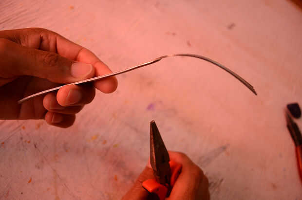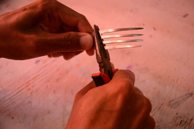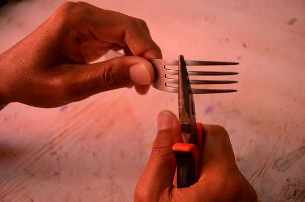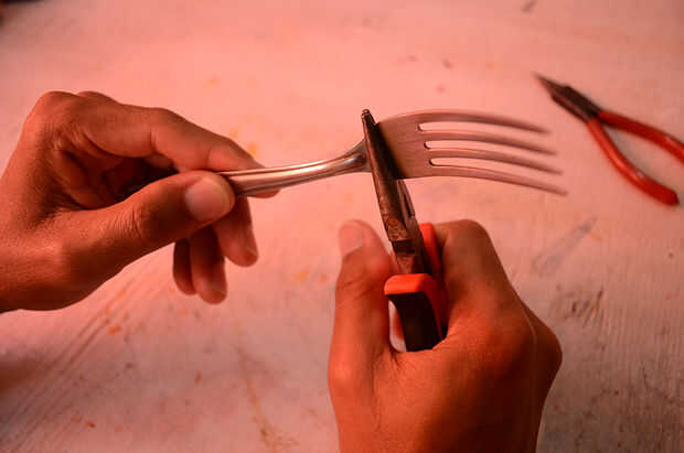 Si usted tiene un martillo y el yunque en el hogar, usted puede straigten la horquilla con ellos en vez de las pinzas.