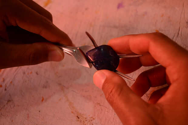 Asegúrese de que la gema esté firmemente asentada entre los dientes. Siguiente paso terminaremos el ajuste de la piedra preciosa.