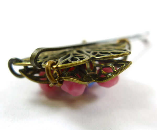 Deslice una flor plana en una horquilla para el pasador de ganchos en el baño entre pétalos. Coloque una flor moldeada en la parte superior la flor plana para alinean los pétalos. Utilice anillas para conectar los dos superiores y dos puntos de pétalo inferior. La flor puede moverse levemente en la horquilla pero se puede hacer más segura mediante la colocación de una pequeña gota de pegamento a la filigrana antes de introducirlo a la horquilla.