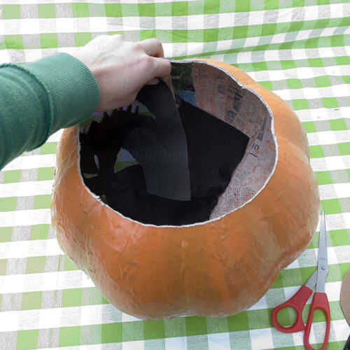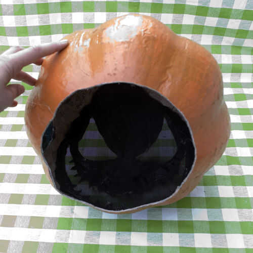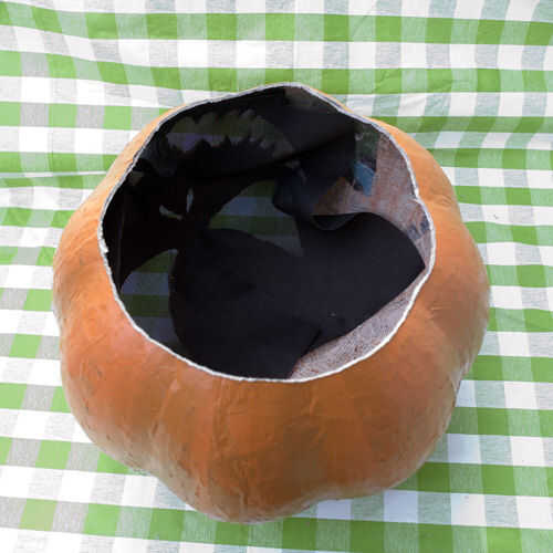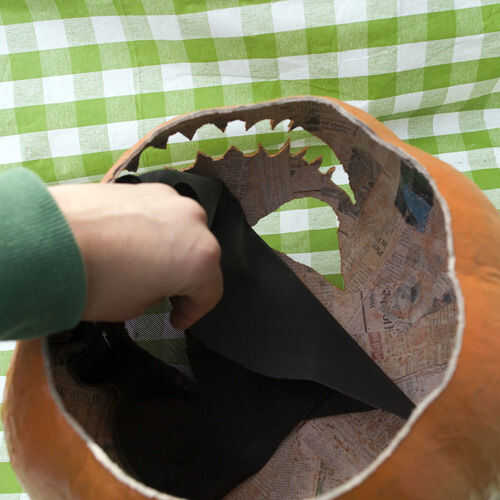 2. Inserte la malla en la calabaza y cuidadosamente la línea para arriba para que ninguno de los agujeros queden expuesto.