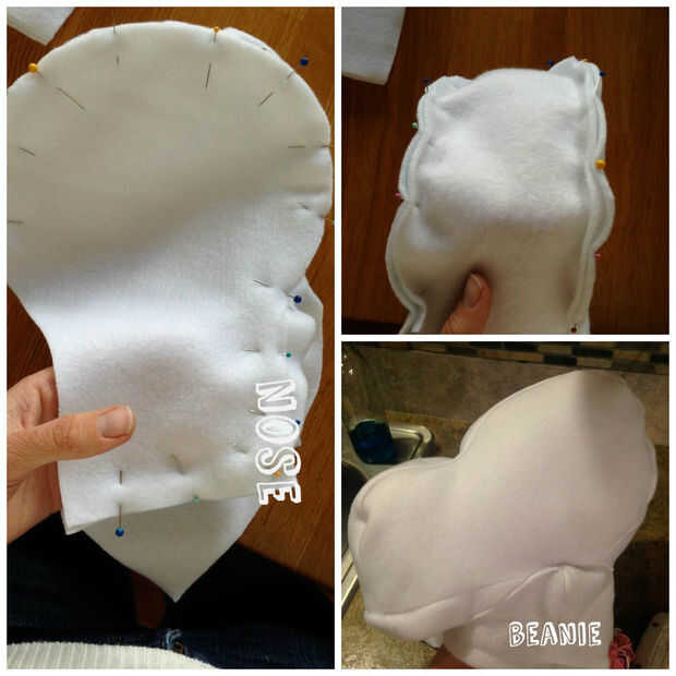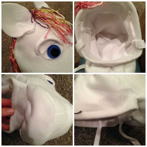 Prender la forma de caballo a la parte superior de la gorrita tejida y pespuntear en. Añadir lazos a cada lado del sombrero en la empanada de cutie!