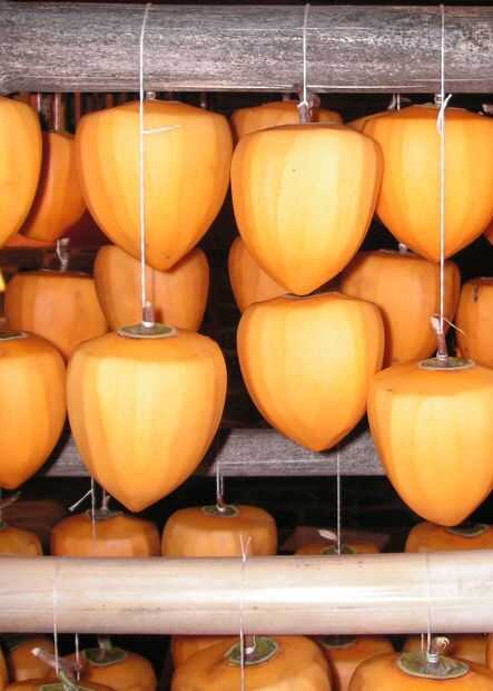 2. colgantes: el método tradicional de colgar la fruta coloca varios en una cadena. Es más fácil colgar dos fruto de sobre el mismo peso en una cuerda sobre un poste. Si se varían las longitudes de la cuerda, puede caber más pares por longitud del poste mediante compensación de las alturas. Armario poste funciona bien. Si el fruto toca a su vecino o la cadena mientras se seca, se pegan, crear un punto débil y romperse en el paso siguiente. Un ambiente cálido y seco, como una ventana soleada, es mejor. Permitiendo que la temperatura disminuya y la humedad al levantarse por la noche lento el proceso y hacer la fruta más flexible para el siguiente paso. Colocar la fruta en luz directa del sol puede acelerar el proceso, pero tienes que masaje más a menudo. La fruta debe ser protegida del rocío, o se pondrá mohoso. Si la madre se ha ido, un tornillo de acero inoxidable en el cáliz y fijar la cuerda a él.