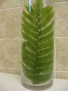 Cortar el una fronda de hoja o helecho de hosta es tan alta como tu florero. Intento usar floreros de 12" o más alto. Corte la cubierta del informe por la mitad a lo largo del pliegue. Cortar una pieza de ella a la altura de su vaso, si es necesario. Introduzca cuidadosamente el follaje en el vaso, cortar el tallo. Utilice un cuchillo de mesa para organizar cualquier oreja de fronda o folletos que consiguieron fuera de posición durante la inserción. Rodillo de la lámina de plástico en un tubo de menor en diámetro que el vaso. Inserte completamente en el Jarrón y liberarlo así que presiona la hoja o fronda contra el vidrio. Añadir un poco de agua para mantener el verdor fresco.