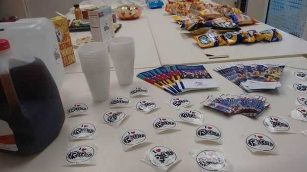 Configurar su propagación - puede ser un deli separó o un buffet completo. Poner un poco de su folleto y material informativo con su comida. Marca de fábrica por todas partes que usted puede!