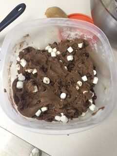 Agregue lentamente el resto de los ingredientes, chips de chocolate y malvaviscos última. Mezclar con las manos será más eficaz que la masa empieza a espesar.