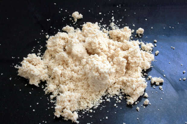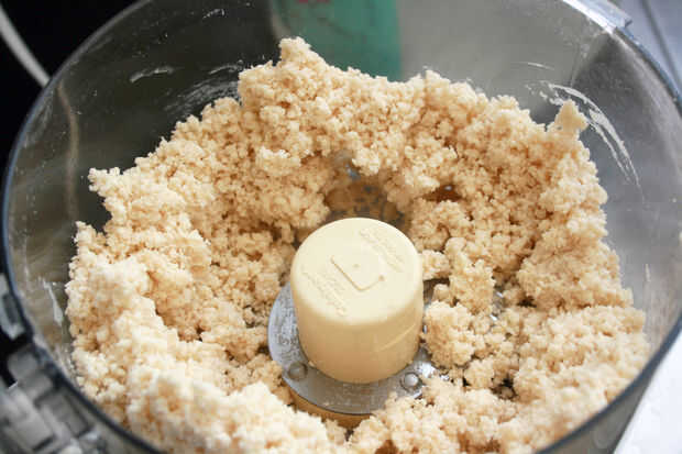 Si la mezcla está demasiado desmenuzable para unir, añadir más agua, 1 cucharada a la vez, hasta que la masa sólo se mantiene unida. Demasiada agua hará que tu masa dura. (Realmente deben rimar dos palabras...)