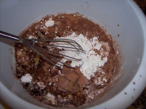 Después de haber mezclado los ingredientes secos, es hora de agregar los otros